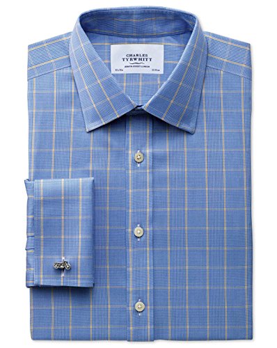 Best Seller! Charles Tyrwhitt Slim Fit Non-Iron Prince Of Wales Blue and Gold Cotton Formal Shirt Size 18/37 Review